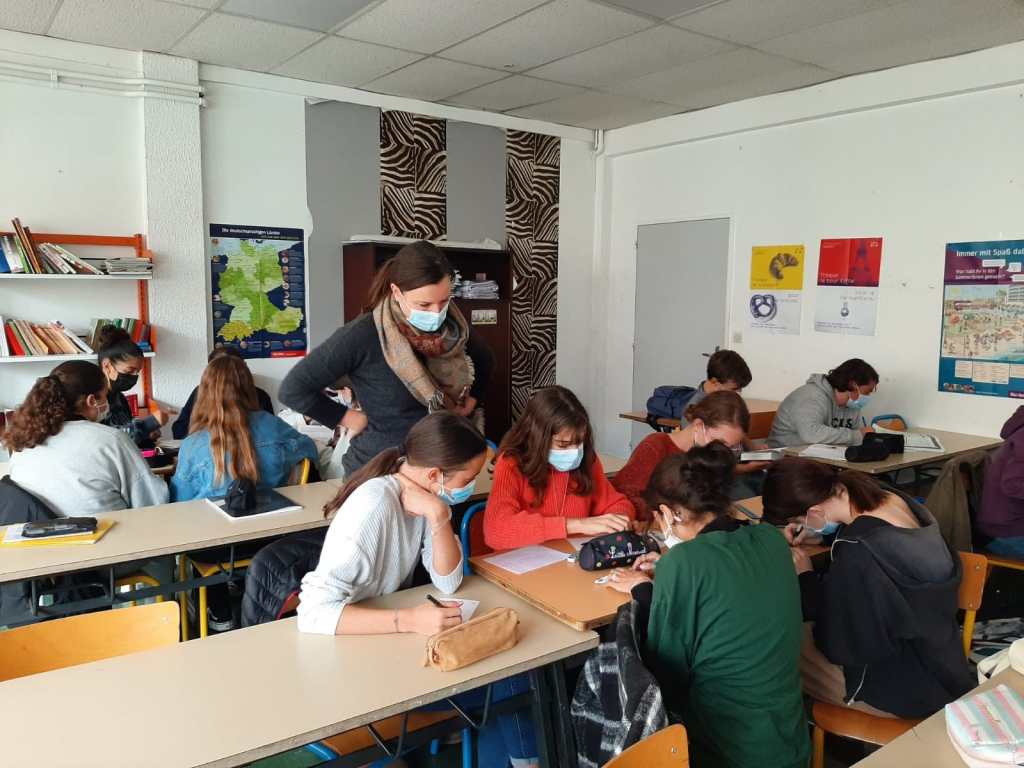Die Schüler*innen des Französischkurs 9 unserer Schule hatten im Vorfeld Postkartenarten an die Partnerklasse geschrieben und Süßigkeiten mitgeschickt. Diese wurden mit Freude empfangen. Nach den Herbstferien bringt Frau Hauck im Austausch nun ebenfalls Karten und Süßes mit. Dieser Aufenthalt bot nicht nur die Gelegenheit einen authentischen Eindruck in das Schulleben der Partnerschule zu erhalten, sondern auch den Kontakt zu stärken und ein gemeinsames Projekt für dieses Schuljahr intensiv zu planen: Es soll vor den Sommerferien 2022 ein Bilderbuch mit 4 deutsch-französischen Geschichten zum Thema Europa entstehen.