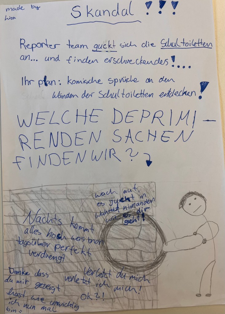 Das ist ein ganz tolles Schulkonzept, weil ihr voneinander lernt und miteinander lernt. Im Leseclub arbeiten wir eigentlich schon drei Jahre so, allerdings nur innerhalb eines Jahrgangs, aber klassenübergreifend. Aber nun finde ich das in den Werkstätten total schön, dass es jahrgangsübergreifend ist und die größeren mit kleineren in Kontakt kommen.