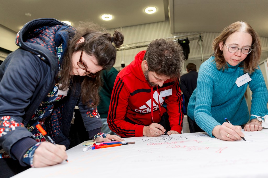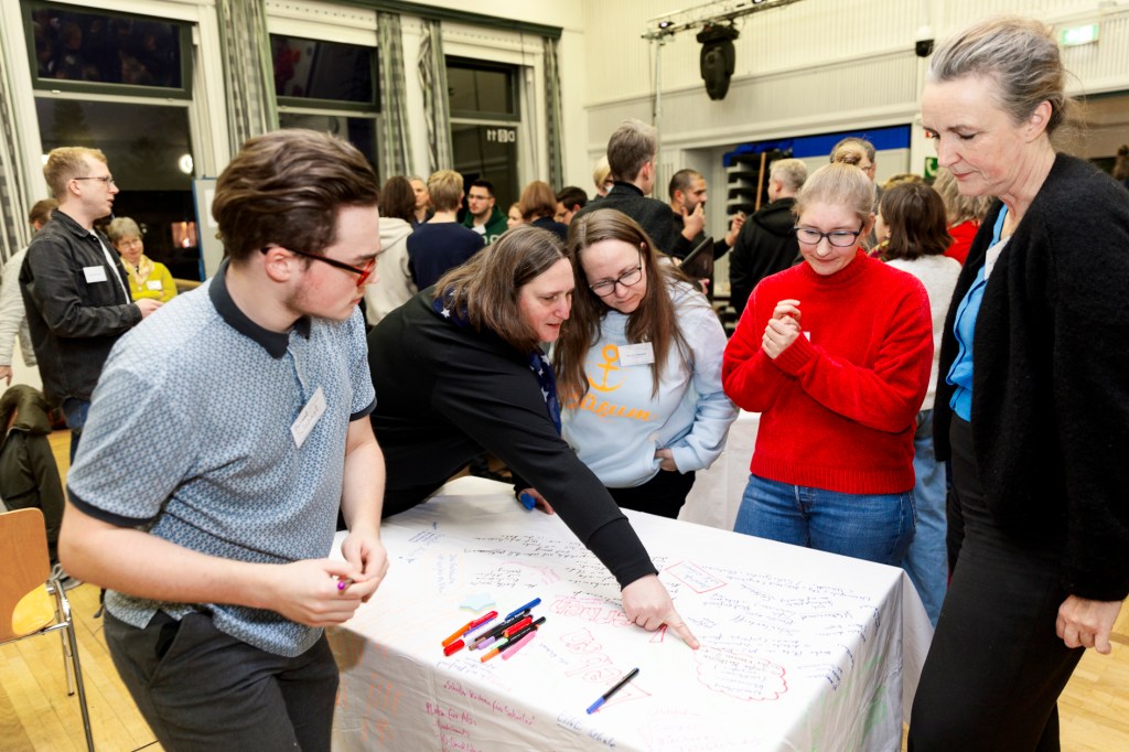 Hinter allen Beteiligten liegen spannende Jahre: Ein Neubau der Grundschule Querum wurde beschlossen und die Baumaßnahmen sollen bald beginnen. Dadurch verliert die IGS Querum Flächen und Gebäude, gewinnt aber die Räumlichkeiten und Flächen des bisherigen Grundschulstandortes hinzu. Wie kann man daraus nun ein funktionierendes Ganzes machen, das den pädagogischen Erfordernissen der IGS Querum Rechnung trägt? Unter anderem dieser Fragestellung soll eine Kooperation der IGS Querum, der Stadt Braunschweig und der TU Braunschweig nun auf den Grund gehen. Der Oberbürgermeister Herr Dr. Thorsten Kornblum und die Hochschulpräsidentin Frau Prof. Dr. Angela Ittel unterzeichneten bereits im Juni die Kooperationsvereinbarung. Am 20.12.2023 war es nun endlich soweit: In der Aula der IGS Querum trafen in einer KickOff-Veranstaltung zur „Phase 0“ alle Beteiligten zusammen und tauschten erste Ideen aus. Als Phase 0 wird hierbei eine Phase im Rahmen eines Neubaus bezeichnet, die die Aufgabe hat, die Bedürfnisse der Nutzenden herauszufinden. Aus diesem Grund nahmen an der Veranstaltung in Querum auch nicht nur Vertreterinnen und Vertreter der Stadt, wie Frau Dr. Dittmann und Herr Dr. Eberle aus dem Fachbereich Schule sowie Vertreterinnen und Vertreter des Rates der Stadt und der TU teil, sondern auch zahlreiche Schülerinnen und Schüler, Eltern und Lehrkräfte. Auch das Regionale Landesamt für Schule und Bildung war durch den Leiter der Behörde, Herrn Thorsten Glaser, und Frau Dorothee Kirsch, Leiterin des zuständigen Dezernats vertreten.